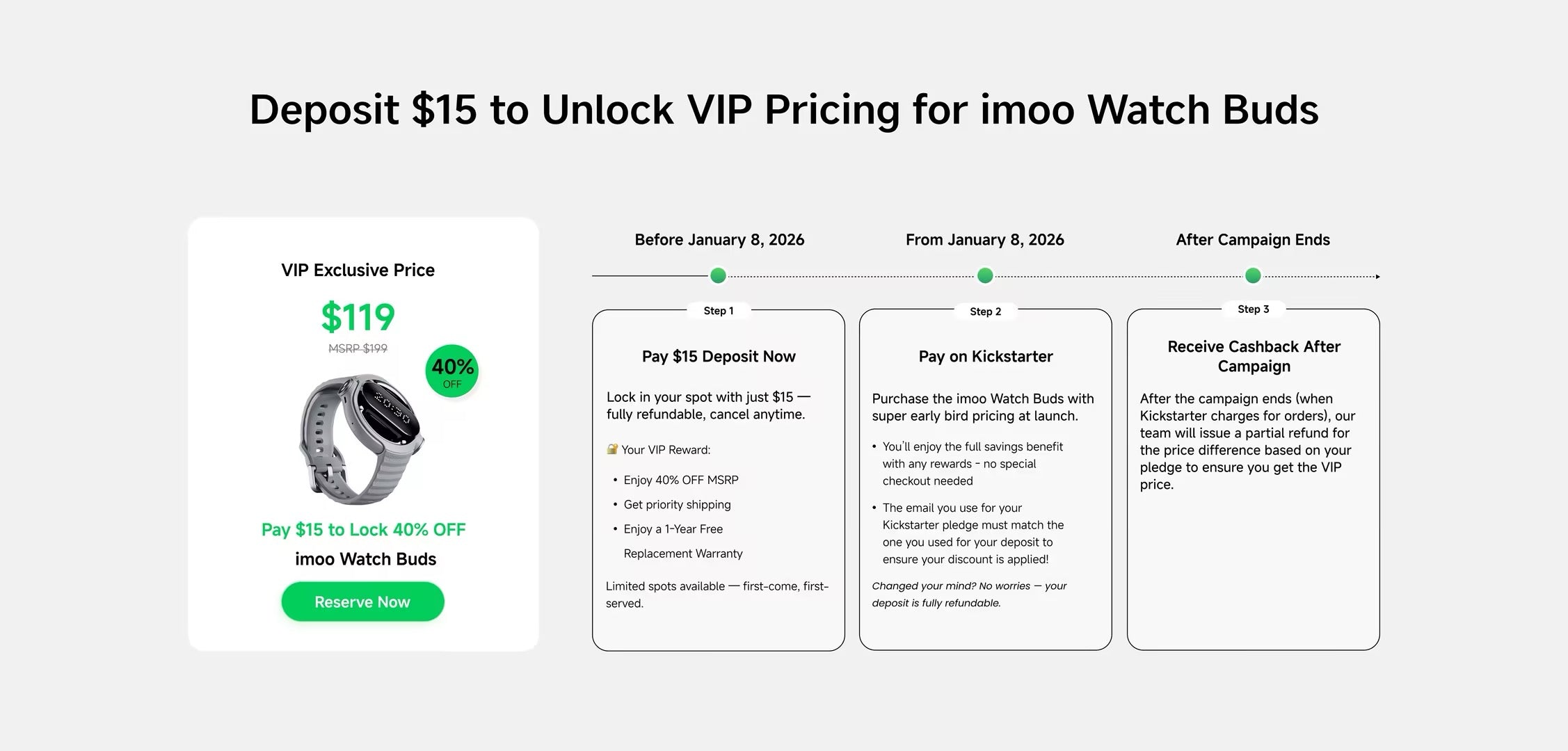 Yes. Each $15 deposit secures VIP pricing for one imoo Watch Buds. If you'd like to reserve more than one, simply place multiple deposits using the same email.