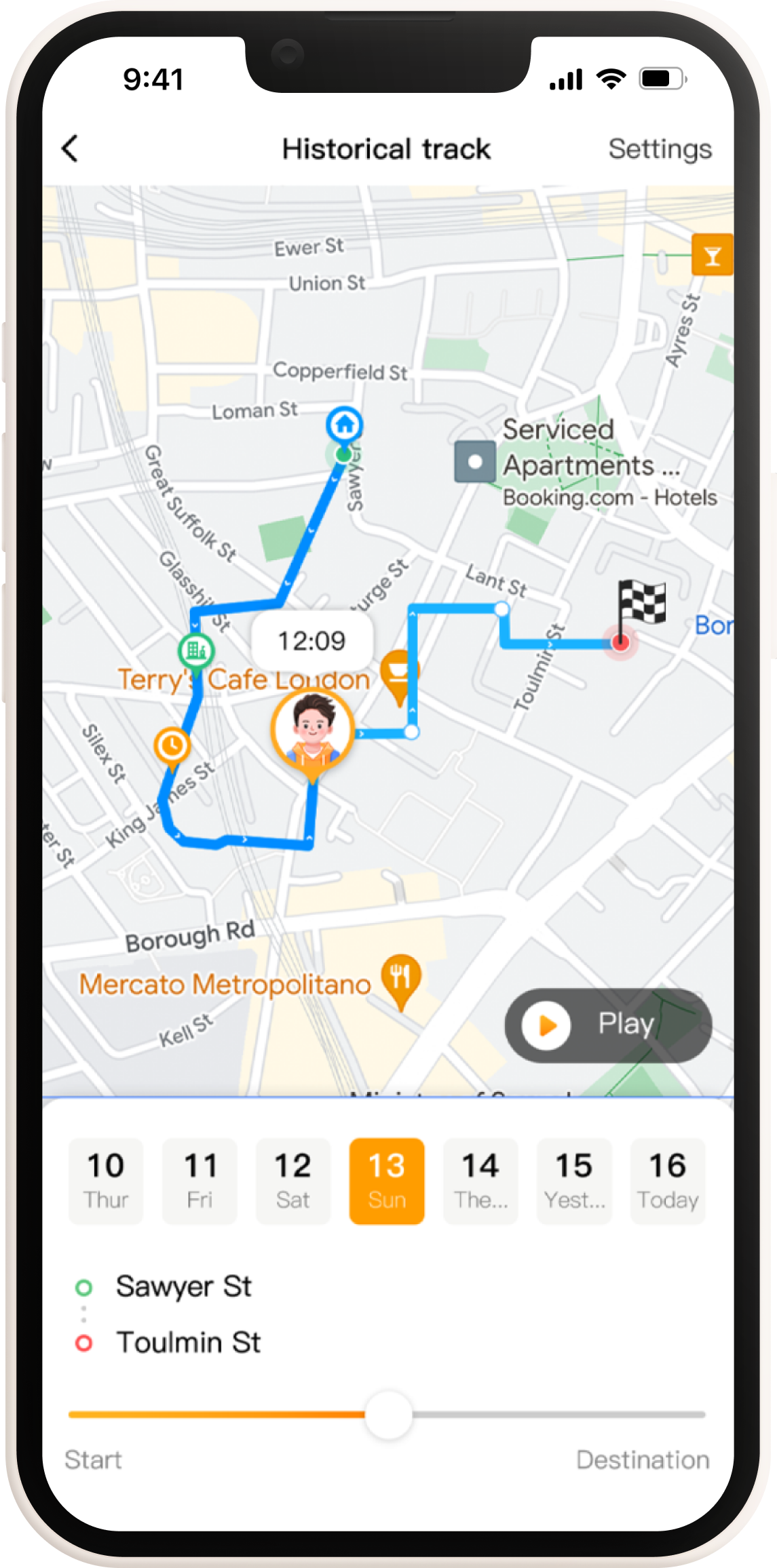 The kid’s location is recorded as frequently as every 1-2 seconds to provide accurate traces of your kid's activities throughout the day. You can view details on where your kid has been in the past 14 days and how long they stayed in each place.